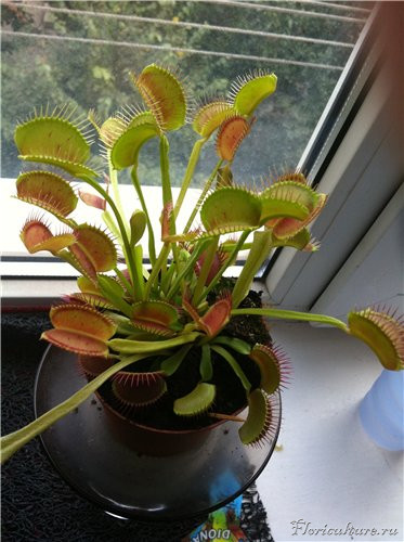 Отмечу особо, что удалять нужно только полностью засохшие листья - достаточно просто слегка потянуть их и они сами вытаскиваются, - а так же ловушки в которых остались насекомые. Зелёные и желтеющие листовые черешки удалять не следует. Растение ещё заберёт из листа все необходимые ему питательные вещества.