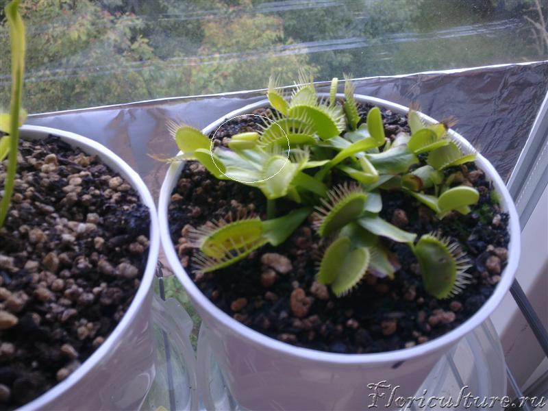 Да нет, света как раз как всегда: незастекленный балкон, солнечная сторона (прямые лучи с 8-30 до 15). Да и погода солнечная стоит. Я ж говорю, растет быстро и ловушки красные от солнца. Когда нет света все процессы обычно тормозятся. А тут только со вчерашнего дня уже новый зачаток листа вышел