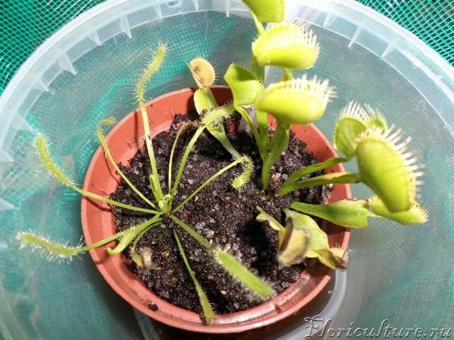 меня больше интересовало можно ли мухоловку и росянку вместе, нигде не могу найти информацию