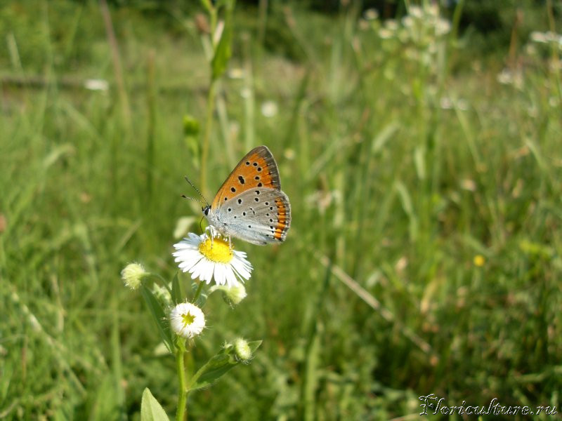 Сидит бабочка, пьёт нектар. Подлетает шмель, начинается возня, бабочка улетает. Шмель пьёт нектар.