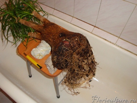 Потом предстояло освободить корни от голландского грунта, было не просто но получилось. В таз набрал теплой воды, и аккуратно погружая земляной ком освобождал.