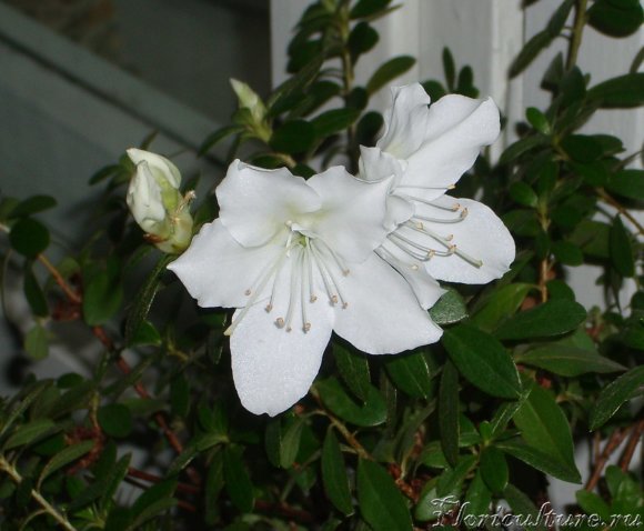 Примерно три года назад, зная мою любовь к цветам, на работе подарили голландскую азалию. Она была вся в белых бутонах. Когда расцвела -- было что-то неописуемо красивое! У меня рука не поднялась бутоны оборвать. Я дождалась, когда она отцветет, а потом пересадила методом перевалки в горшок побольше, добавив покупную землю для азалий. Она и сейчас растет у меня и снова собирается порадовать своими нежными цветочками. :)