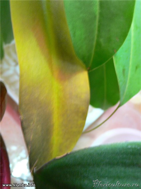 3) листики у него должны быть только посредине бордовые? Потому как по листьям есть тёмные пятна вразброс, с другой стороны листа эти же пятна с коричневым отенком...