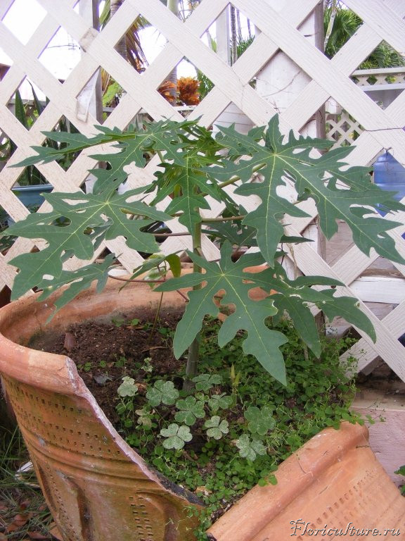 Месяц назад пересадил из пластикового стакана в разбитый горшок - стоял рядом с домом. Подумал, что папайе будет комфортнее в разбитом горшке, чем в маленьком пластиковом стакане. А теперь сравним насколько быстрее пошел рост папайи в горшке с большим количеством земли -