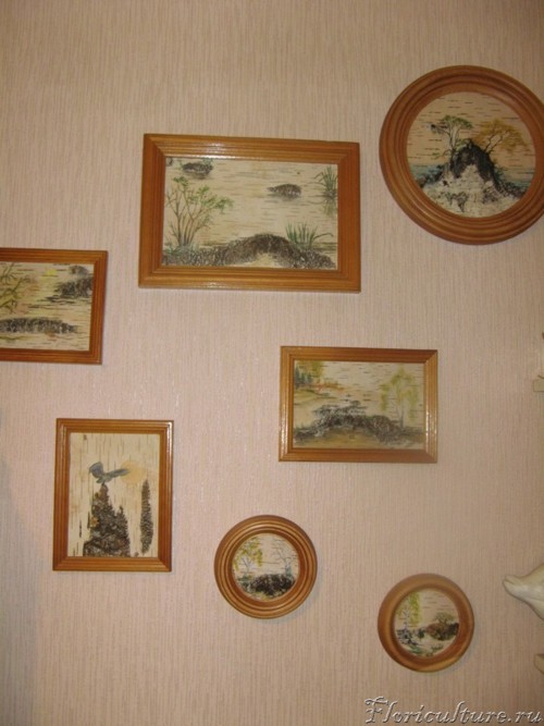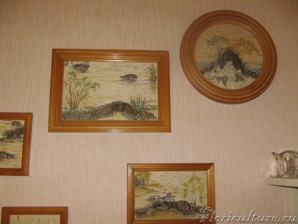 мы жили рядом с г.Енисейском, в Красноярском крае. еще оттуда привезли картину, выполненую в виде апликации из бересты.