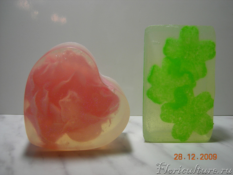 Что касается мыла-однажды пробовал делать,не такое красивое,просто накрошил старого мыла и(!!!)ТЁРТЫЕ ЛИСТЬЯ ЭВКАЛИПТА!Так у меня после использования 2 дня руки чесались!