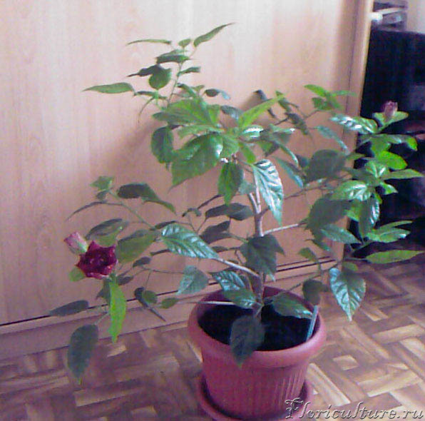 Зверушка оказалась благодарной - уже весной вся листиками обросла и даже один раз цветком побаловала меня. Но вот в эту зиму что-то совсем "лысеет" - листья постояно желтеют и опадают. Зато на днях я выяснила, что это - гибискус. И вот к вам за помощью прибежала. :-)