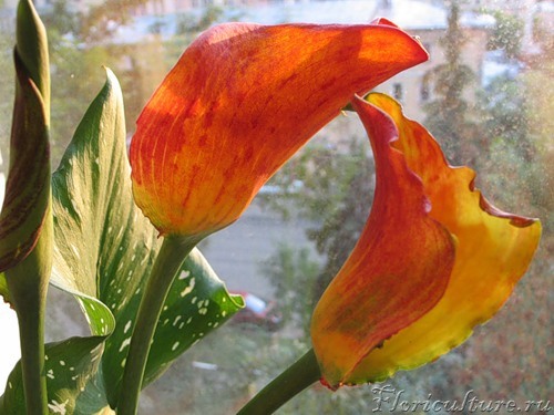 калла моей мамы, которую та решила не выкапывать каждый год (посажена в большой горшок, зимовала в подъезде), из года в год (а это третье ее лето) все больше. в этом году зацвела. но пока цветок один.