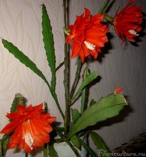 Цветы вообще-то у меня розовые. Но это же гибрид. У видовых растений наверное тоже белые цветочки.чем то напоминает HYLOCEREUS, только листья у него плоские и цветы красные,
