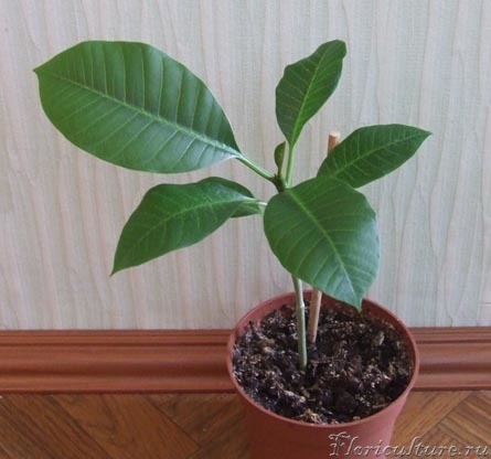 У меня плюмка из семечки. Такая ладненькая растет. Было на ней что-то подозрительное - после обработки стала чудесным цветочком. Вот посмотри: семена сеяла в ноябре, кажется. Правда из 2-х взошло одно семечко. Но какая красотка?! :ir: