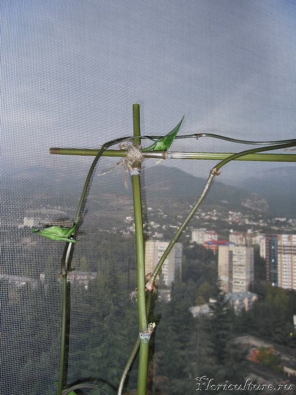 Татьяна-К, так здорово Вы его вокруг дуги обвили! А я кокосовую палку воткнула, так он ее перерос за два месяца и теперь неудержимо рвется за окно)