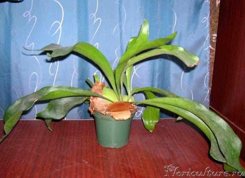 Плоскорог растет медленно. Температура летом 22-24, зимой около 20, но не ниже 15. Высокая влажность воздуха. Яркий или рассеяный свет. Обильный полив, не допуская пересыхания почвы и не переувлажняя. Боится сквозняков. Субстрат как для орхидей.