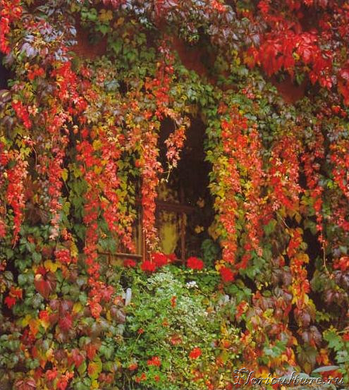 Ага, осенью он "в самом соку". Но насколько я знаю, не всякий декор. виноград осенью краснеет, у какого-то просто листья облетают.