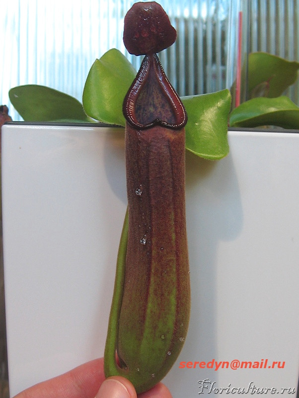 У меня, например, этот же вид от этого же производителя (кстати, забыл написать, что производитель этих растений Borneo Exotics) годом старше - я впрошлом году у них приобрёл - сейчас уже имеет кувшины 16 см. при высоте растения всего 3 см! И это, кстати, ещё одно достоинтсво этого вида - у него практически отсутсвуют междоузлия. Он на протяжении всей жизни остаётся очень компактным в высоту. Где-то в теме о Непентесах была фотография.