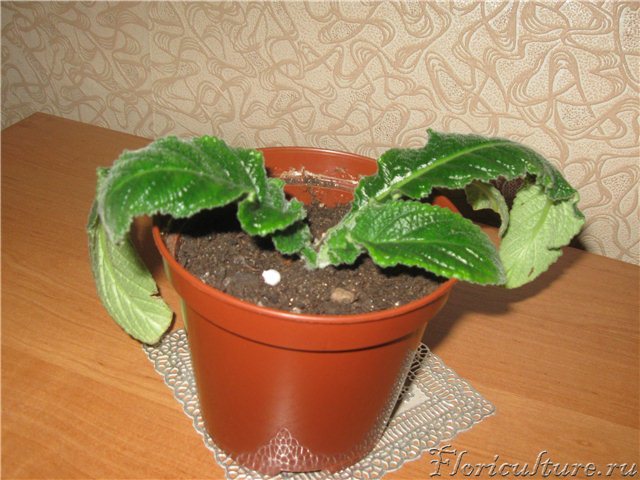 А листья скручиваются из-за сухого воздуха. Где-то читала, что вокруг стрепса надо воздух увлажнять, но только, чтобы на цветы и листья не попала вода