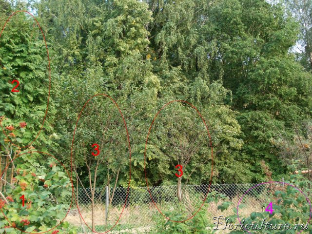 4 - ныне уничтоженная малина (она сама размножилась, по площади занимала 4 сотки)