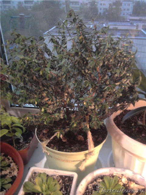 У мирта сохнут кончики листочков. Причем они становятся коричневыми примерно до половины листочка, дальше не сохнут и не отваливаются. Растет он у меня уже года три, условия одинаковые, опрыскиваю регулярно... Но раньше такого не было. Подскажите, пожалуйста, что это может быть?