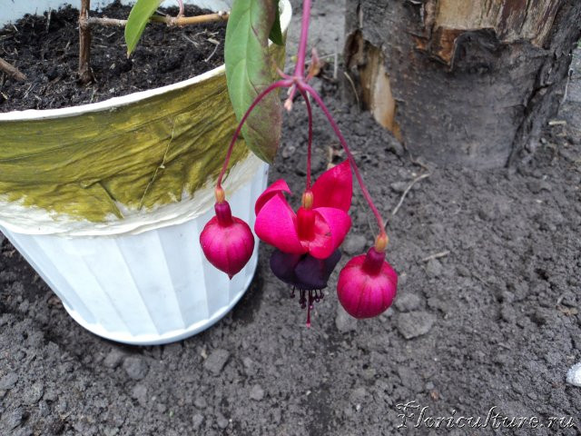 Вообще Фуксия из тех растений, которые требуют постоянного омоложения. Ежегодно весной растение надо либо сильно обрезать, чтобы появилась молодая поросль, либо размножать верхушечными черенками. Если этого не делать, фуксия так и будет постоянно растить верхушки и сбрасывать нижние листья, превратится в голые плети с пучками листьев и цветов на конце.