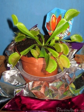 Lenka-pufik, с марта по июнь находилась на лоджии, потом полтора месяца жила в саду, но из-за обжорства была возвращена обратно на лоджию, где находится до сих пор. Солнце прямое с 9:00 до 17:00 (это примерно, так как точно не засекал). Лампами не пользуюсь. Предыстория такова - купил мухоловку в прошлом году в середине августа, жила на этой же южной лоджии до середины ноября, сама приготовилась к зимовке, отпустила широкие пологие листья и остановилась в росте. Зимовала до марта в холодильнике, обильно пролитая и обрызганная "Максимом".