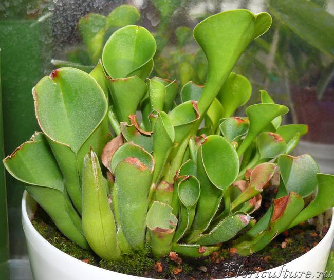 у меня тоже большие проблемы с этим растением. Купила две штуки у разных людей, были в прекрасной форме, а превратились в какое-то уродство. Что-то я делаю не так, а что не пойму. Предположительно летом, в жару, вообще не нужно кормить, а лишь опрыскивать холодной дистиллированной водой. Кормить нужно только зимой, когда прохладно и высокая влажность воздуха. При кормлении в жару удобрением начинается интенсивный рост кувшинов, но они вырастают не пузатенькими, а трубчатыми, нектарные ложки не образуются, и края кувшинов высыхают от недостатка влажности.
