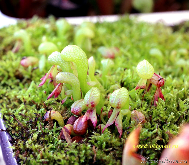 Ой, там такая мешанина... Их там четыре розетки, среди которых и голландская меристемная разделённая пополам, и детка от моей семенной, которую я ранее показывал и которая погибла в какое-то лето, а детка выжила и я тоже её разрезал пополам. Одним словом Дарлингтонии испытывают на прочность, заставляя проделывать разные ухищрения в целях оптимизации роста