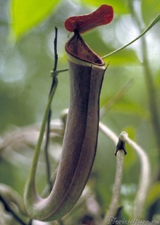 Мне не совсем понятно, что подразумевалось под термином "цветок"?! :surp: Кувшин или именно цветок? :surp: "Цветок напоминает миниатюрную бейсбольную рукавицу"... Если последний, то это ерунда получается. Цветы не способны переваривать, а кувшин на бейсбольную руковицу ну никак не похож. И потом, если это кувшин, то каким образом он "выплёвывает", если там всегда есть пищеварительная жидкость. И кто бы не попал туда - утонет так или иначе. Другое дело, что основная часть пищи наземных Непентесов именно муравьи и термиты. Ну нравится им их сладкие выделения. И N. ampullaria тоже питается муравьими и термитами, и ещё очень много видов других Непентесов.