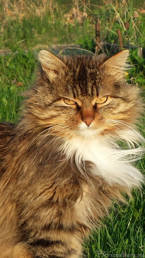 Он же ранее в кормушке. Представляешь как к зиме оброс, распушился? Весной "облезет" и снова станет худым. Это я его сегодня на даче сфотографировала. Вот что значит кот в естественных условиях. :) В дом его не пускают, поэтому живёт под домом, в углу под печкой. Хороший котяра.