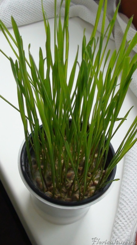 Все это пришлось изобретать после того как в магазине купила траву с мухами. Думаю если большое количество семян закладывать в вышеописанное вами устройство, кошка столько не съест, а они закиснуть могут и мошки тут как тут.