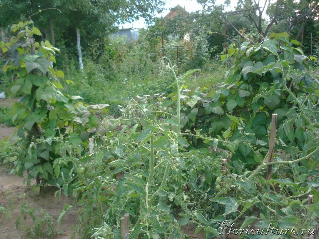 11. Посередке - сообственно фасоль на шпалере (которая под ее массой прогнулась).