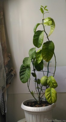 Посажен косточкой с дочкой в прошлом октябре, не досвечивался. Вылез тонкий дохлый росточек с недоразвитыми листиками. В конце февраля чуть не угробился, на него упала склянка спирта