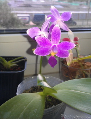 Фаленопсис гибрид. ( с виолацеей)- ароматный ( цветочно- пряный аромат). Цветение револьверное, долгое, многоцветоносный, цветки 4- 4,5 см-----1700.