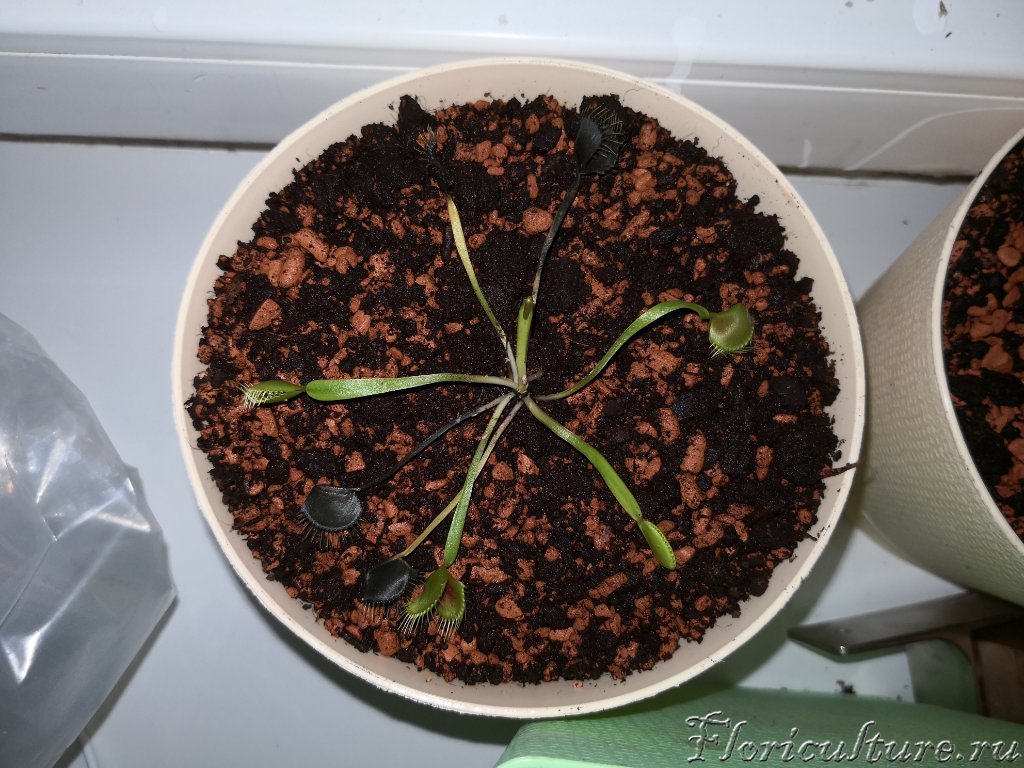 Что можно сказать по мухоловкам. Всё предсказуемо. Это молодые здоровые растения со здоровой ризомой и неплохими корнями. Корни завернуты в сфагнум. Но скорее всего, росли они в другом грунте. Этот только транспортировочный. Они конечно шокированы, потому что они были вынуты из грунта, несколько дней провели в темной коробке. Но мне кажется, всё будет нормально.