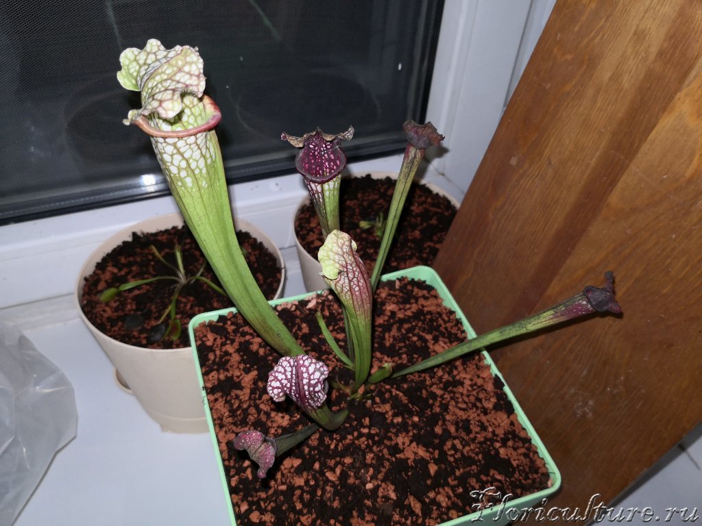 Но сарацении вообще в отличном состоянии. Они просто вытряхнуты из контейнера, в котором росли и комок грунта замотан мокрой бумагой. Т.е , там корневого шока вообще практически нет.