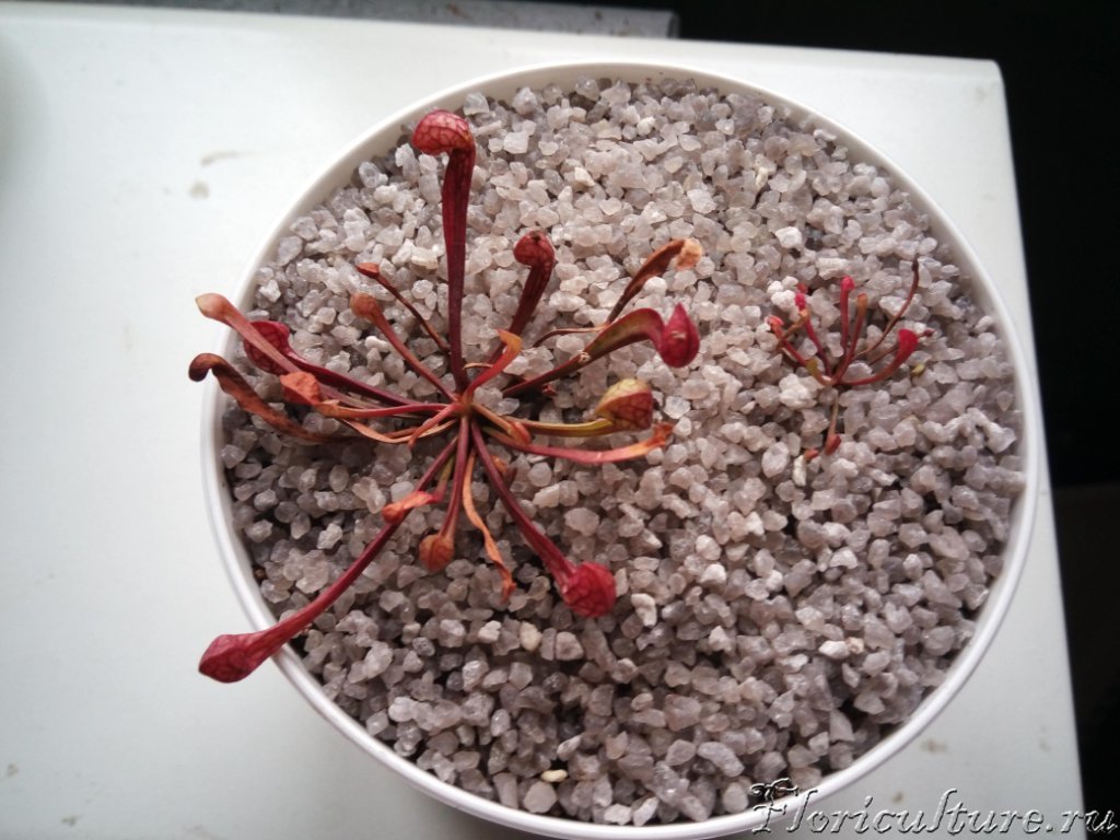 И еще нашла, тоже писал Андрей про саррацении, просто интересно: "Красная окраска (антоцианы) проявляются и развиваются у этих растений (а так же у Росянок и Мухоловок) только при содержании в торфе. Есть данные по выращиванию этих растений, в особенности red- форм, во мхе, например, и окраска у растений не развивалась, а уже имеющаяся утрачивалась".