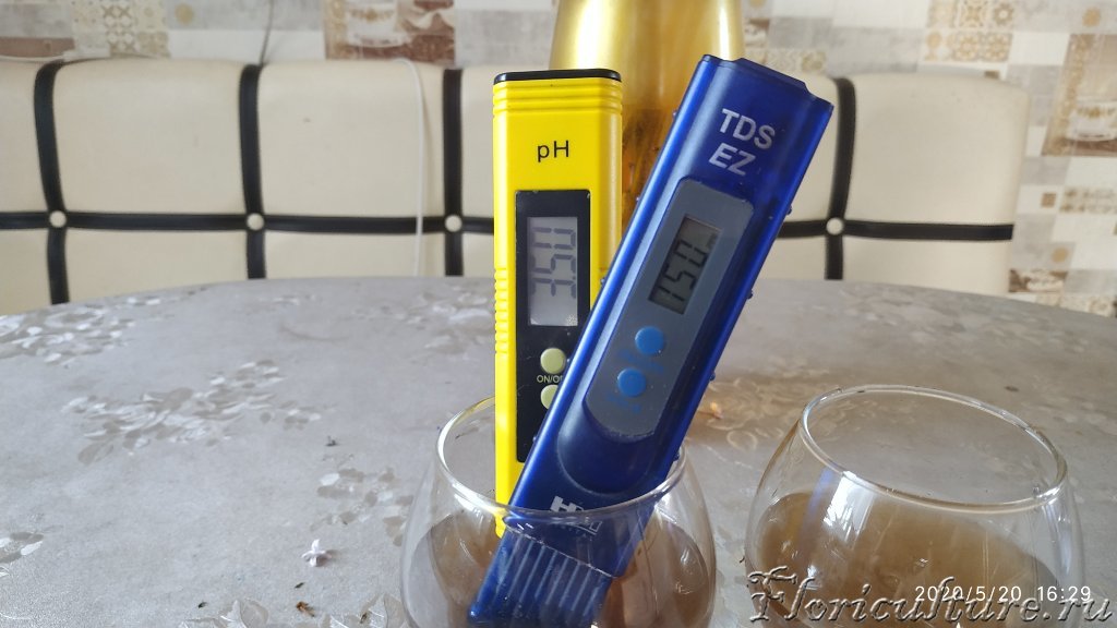 TDS нам наглядно показывает применяемый объем воды (1/2,5 или 1/5), соответственно одна рюмка pH а вторая ppm.