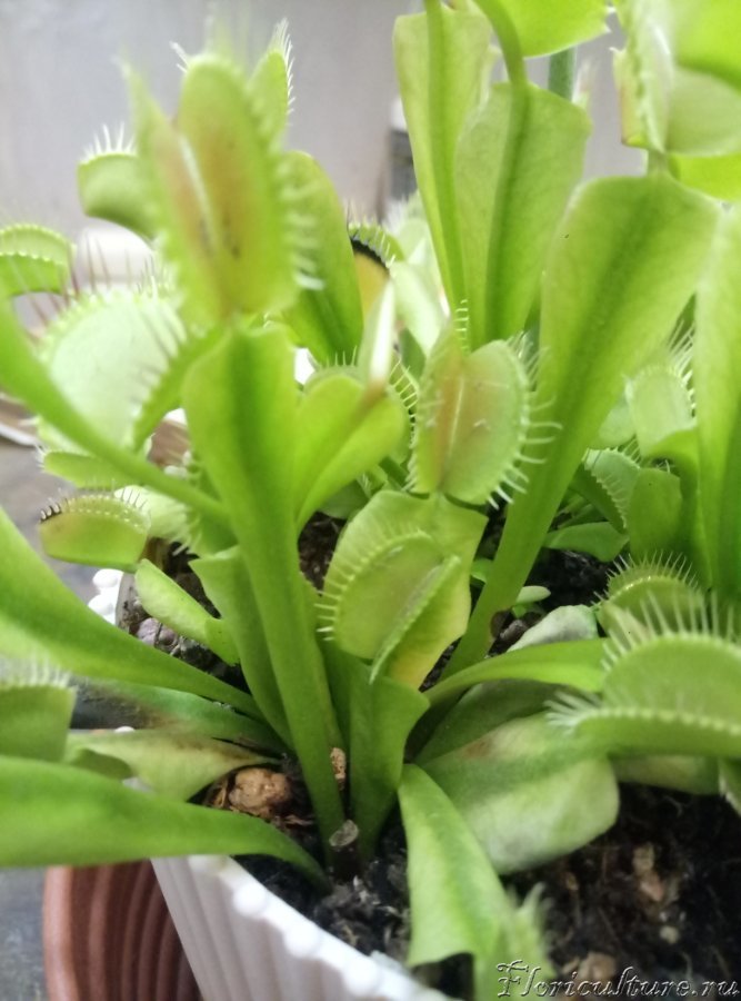 Мой вообще чем-то странным занят, у него листья какие-то и вертикальные, и не совсем, и широкие, и не совсем. Ловушки на земле живые хоть и старые и бледноватые, это цветокоррекция так странно отработала.