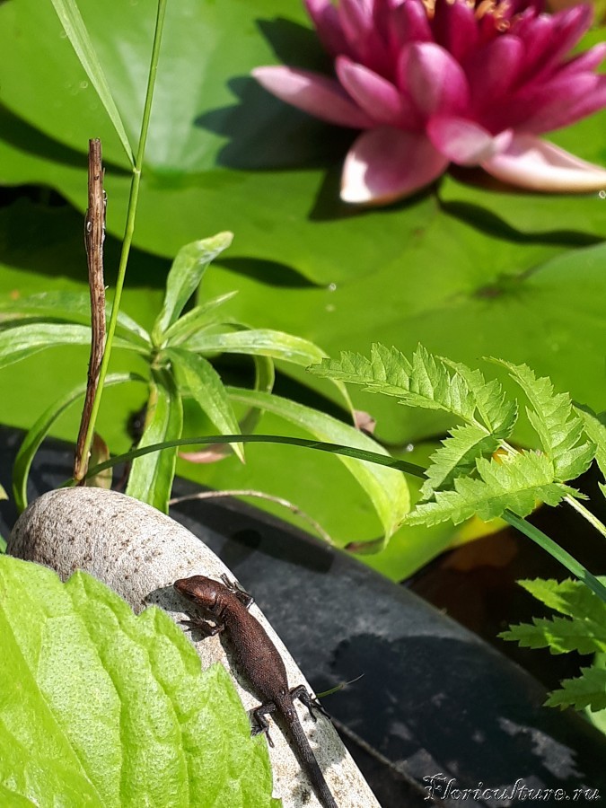 . Живут уже много лет там ,если не ошибаюсь, 13 сортов. Все живы и цветут. Там голландские и купленные у разводчика нимфей из Симферополя. Главное - миниатюрные, т.е. глубига посадки 50-70 см. Там живут постоянные обитатели - лягухи, жабки и тритоны. Из лесного пруда мигрировали и так у нас и остались.