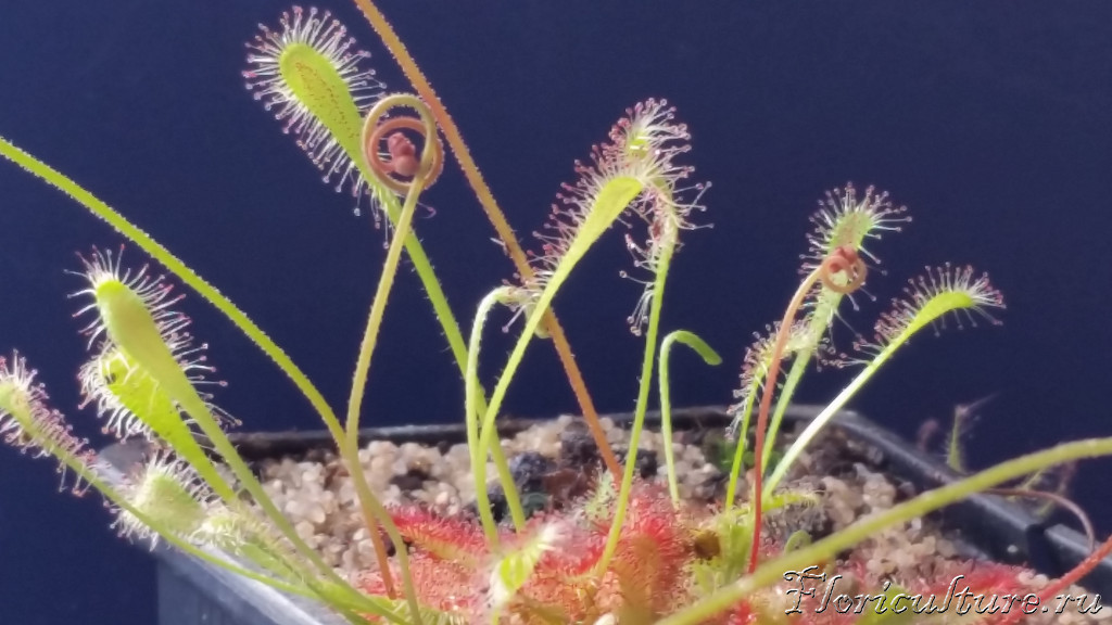 И теперь мне кажется очень логичным что полные завязи смотрят вверх, потому что семенаая коробочка похожа на чашу, в которой находятся семена, так что они оттуда выпадают лишь при достаточно сильных колебаниях, чтобы просыпавшиеся семена не были пойманы самой росянкой, а долетали до земли, подхваченные ветром например.