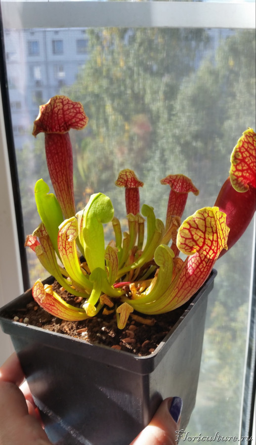 Обстриг у Саррацении дефективные листья, оставил 5 шт, 2 по 40см. Мухоловка тоже листы выкинула, за милую душу лопает мотыля. Сейчас на дворе ноябрь, начали интенсивно расти с конца сентября.