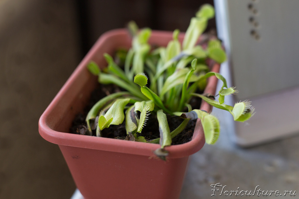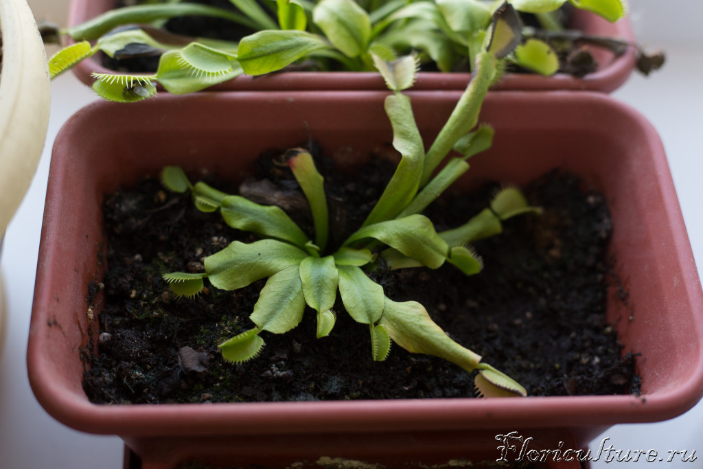 1) Покупалась она в специализированном магазине с плотоядными растениями, там сказали, что почва хорошая и можно не пересаживать. Но мне кажется, что ей тесно. Три кустика сидят вплотную, иногда мухоловки закрываются потому что на них попадают листики с соседних кустиков. Не стоит ли посадить в горшок побольше?