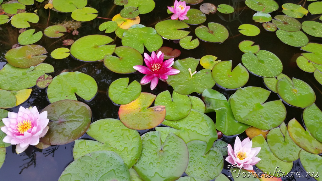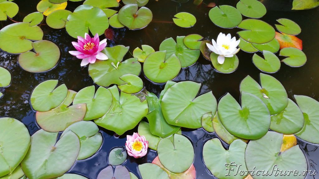 . Живут уже много лет там ,если не ошибаюсь, 13 сортов. Все живы и цветут. Там голландские и купленные у разводчика нимфей из Симферополя. Главное - миниатюрные, т.е. глубига посадки 50-70 см. Там живут постоянные обитатели - лягухи, жабки и тритоны. Из лесного пруда мигрировали и так у нас и остались.
