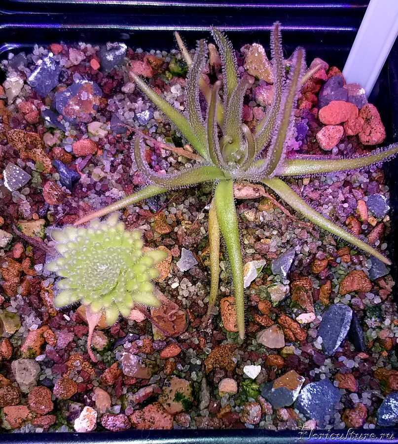 Помогите пожалуйста, не так давно купила росянку и жирянку, решила посадить в флоррариум вместе с венериной мухоловкой(её покупала ещё осенью и отправляла в спячку в холодильнике). Купила специальную землю для хищников, вазу, вулканический камень. В общем посадила это всё 23 февраля, полила и накрыла пленкой сделав в ней дырочки, и мухоловка уже даже после спячки начала давать маленькие росточки, а вот листики жиряночки начали бледнеть и по всей видимости гнить и отмирать. Прочитала что жирянке нужно давать немного воздуха в парничек переодически, вчера (28 числа) преоткрыла пленочку, светило хорошее солнце. На ночь закрыла обратно, а сегодня и вовсе сняла и обрезала листики которые уже почти полностью погибли. Посоветуйте и подскажите как помочь и что я возможно делаю не так. Помогите спасти, а то уж очень мне нравятся эти интересные растения...
