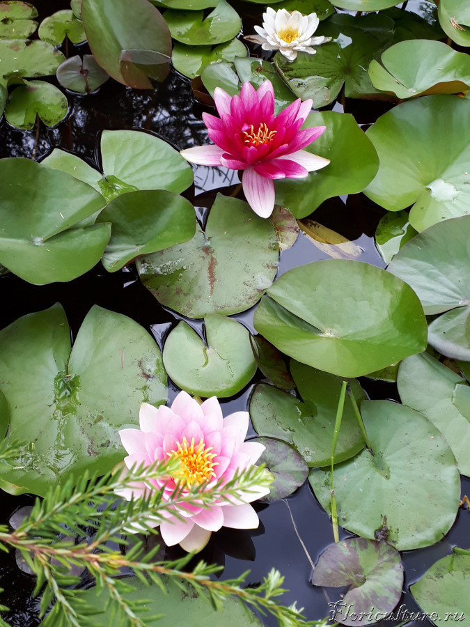 . Живут уже много лет там ,если не ошибаюсь, 13 сортов. Все живы и цветут. Там голландские и купленные у разводчика нимфей из Симферополя. Главное - миниатюрные, т.е. глубига посадки 50-70 см. Там живут постоянные обитатели - лягухи, жабки и тритоны. Из лесного пруда мигрировали и так у нас и остались.