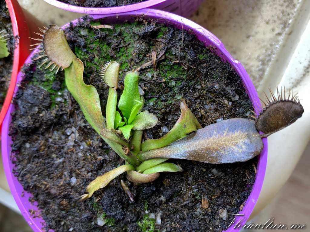 Еще под взрослыми листьяии появились два крошечных листочка с ловушками. Это детка? Или ей так плохо, что листика настолько измельчали?