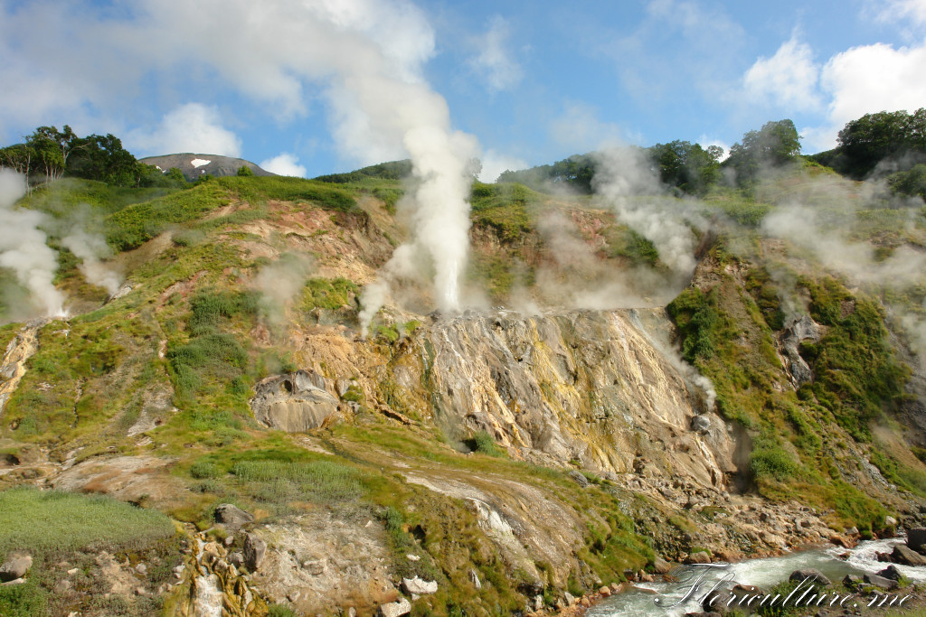 Есть очень красивая легенда о богатыре Узоне. Вот на фото, левая холодная река, это "слезы Узона", которые усмиряют злых духов, а они, духи, живут под землей, жгут серу и стремятся кипятком и удушливым газом уничтожить все живое.