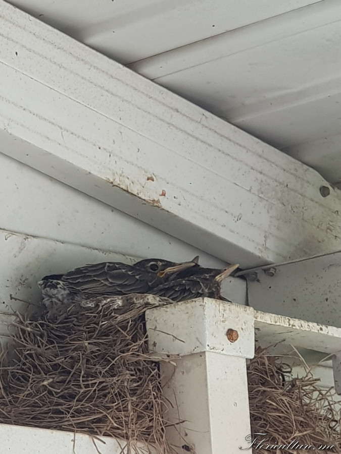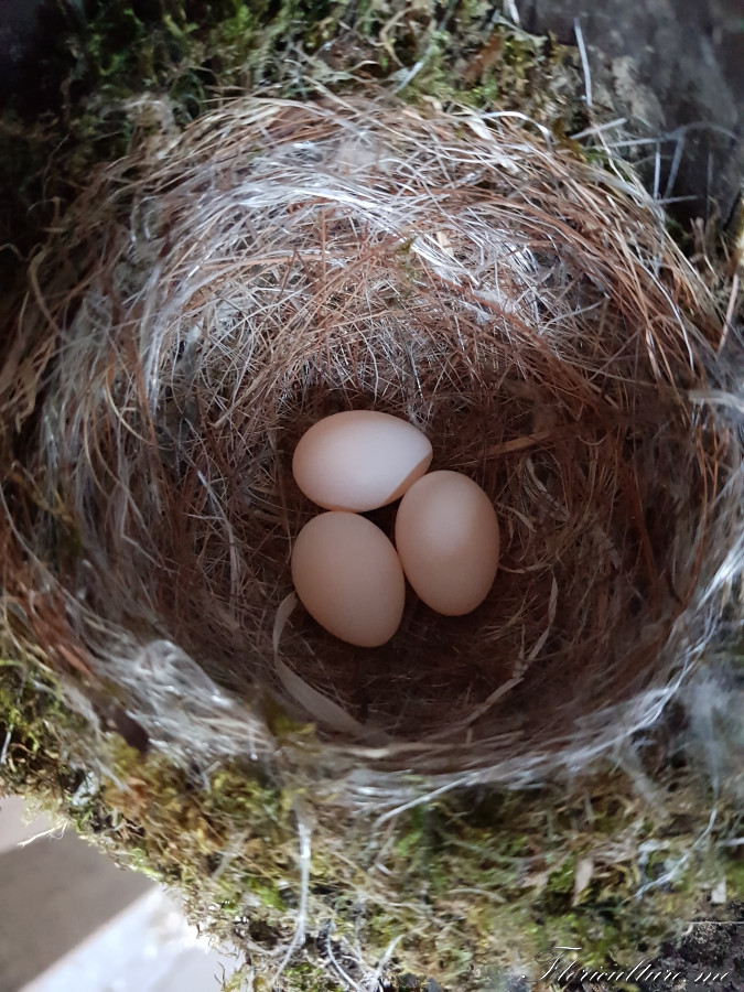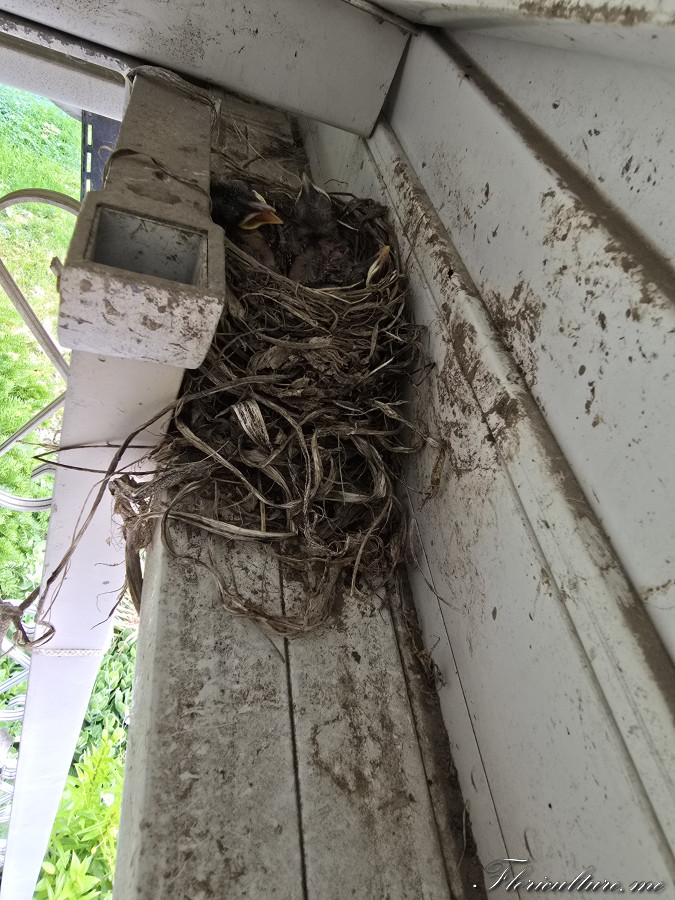 Судя по тому, что пишут в сети, то через 2-3 недели птенчики должны появиться. Она уже неделю сидит. Примерно каждые 2-3 часа улетает на пол часа и я бегом бегу растениями заниматься, не хочу, чтобы бросила гнездо. Как птенчики появятся, покажу малышей, мы аккуратно фоткаем и когда мамы нет. Как мама на гнезде я вообще не хожу там. Входная дверь от гнезда в трех метрах примерно, вчера приехали, она не улетела, как только ближе подходишь, сразу срывается с криками. А знакомство наше состоялось в ночи, когда я не знала, что там кто-то есть, а она не думала, что в 3 часа ночи кто-то там будет ходить (вернулись из поездки поздно). В итоге она с криками улетела, а я схватившись за сердце подскочила и бросив все, что хотела сделать, пошла домой.