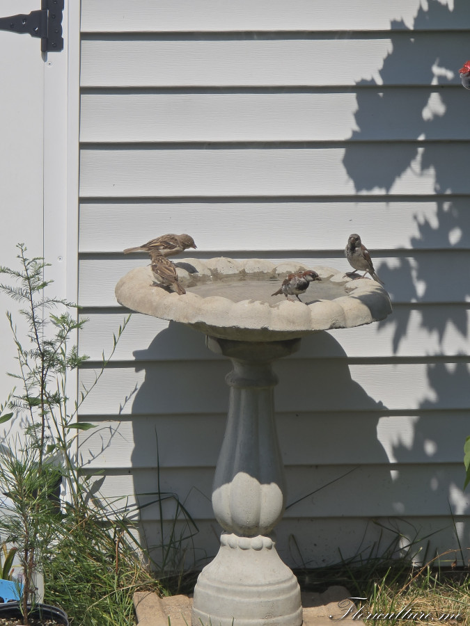 И тут заметила, что горшки опрокинуты, думаю, что такое? И потом увидела воробьёв, которые из поддона у хищников пьют. И вспомнила, что странная штука в сарае стоит, оказалось, что это поилка для птиц