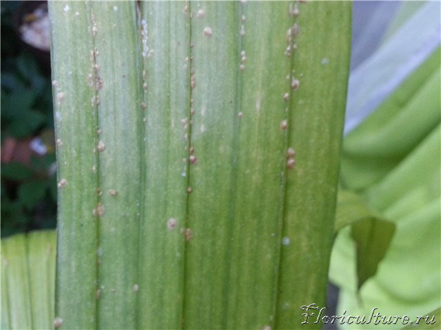 Это похоже щитовка. Вот здесь можно про нее почитать, а также, как бороться http://floriculture.me/rast/yhod/vrediteli.shtml#1