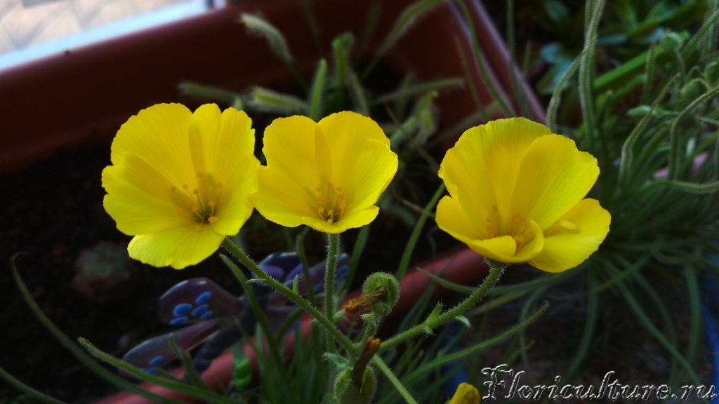 Цветы росолиста. К сожалению, живут всего день, не важно опылять их или нет. Потом закрываются.