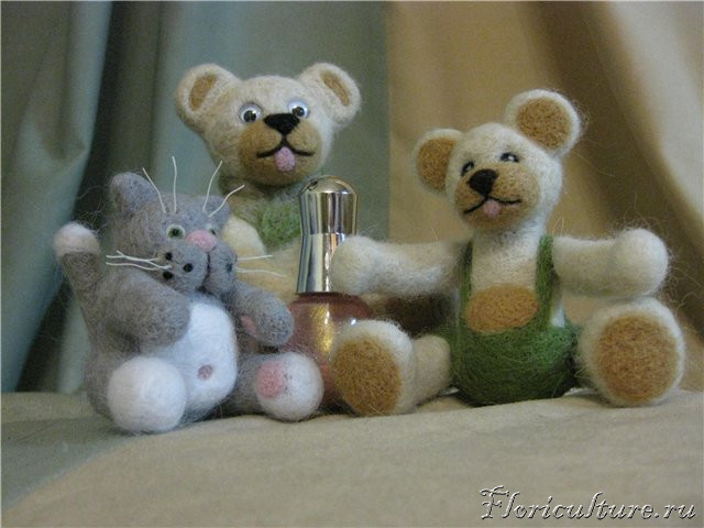 У меня скопилось два пакета шерсти от волкодава,вот я и думала,как бы это все в пояс оформить,вот и пришлось научиться мокрому валянию....пояс получился очень теплый, даже "горячий" :Smyshenie: ....,а потом решила освоить сухое валяние, сваляла мишку, потом зайца, теперь ребенок попросил маленького мишку в виде брелока на сумку - позже выложу фотки сразу трех зверушек и пояс из волкодавьей шерсти, потом буду осваивать тапки и валенки,благо информации в инете по валянию много :vip: